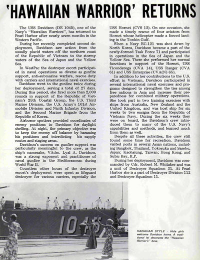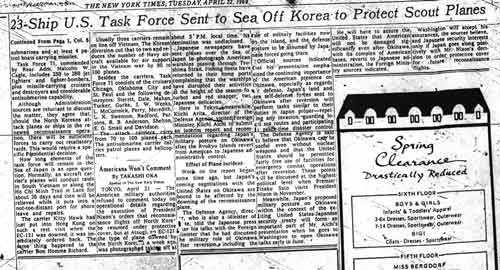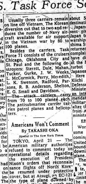 Article (April 1969) in New York Times on Task Force 71 off Korea - Davidson participated
