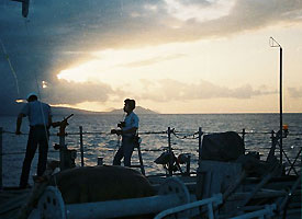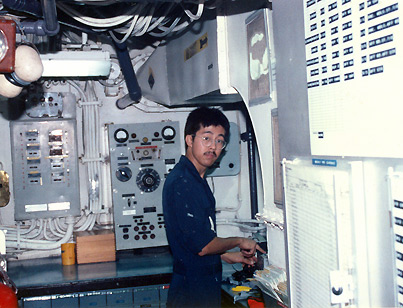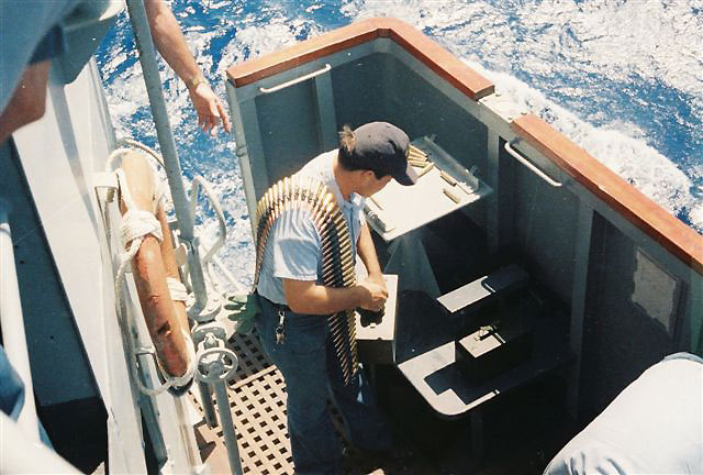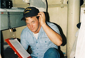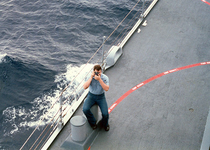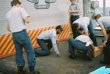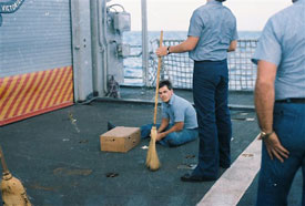 (Seamen Smoot seabat on flight deck)