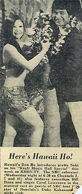 Left Photo: Don Ho Newspaper clipping introducing his "Kraft Music Hall" special, back in the 60's.