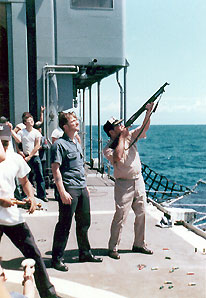 LT. W. E. Dennis, USN was killed in action in South Viet Nam after having served on board Davidson as First Lieutenant and CIC Office. The second Westpac cruise book was dedicated to Lt. Dennis.