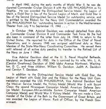 USS DAVIDSON DE-1045 / FF-1045 Namesake